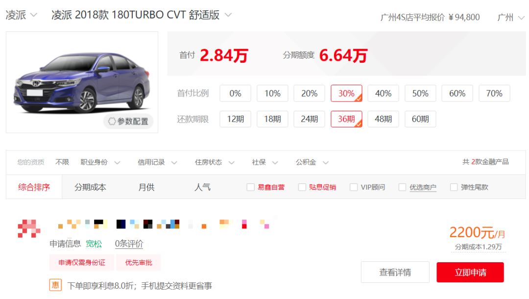 我们再回头看看汇裕汽车提供的分期方式,一台16款的本田凌派的首付要4.1万,月供3700元,但大咖随便在网上找一家分期贷款机构,首付还不到3万,月供仅需2200元,在同样的分期期限下,更何况汇裕汽车提供的车辆还是三年前的车款,算上折旧也远不用这么高昂的月供费用,所以可想而知这其中的牟利程度。