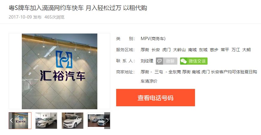 目前看来,刘姓男子跟汇裕汽车服务公司的纠纷,是由“以租代购开滴滴”模式引起的。汇裕汽车服务公司对外打出的旗号是“滴滴出行战略合作伙伴网约车运营中心”,开展的业务是“汽车以租代购”以及“汽车租赁”。