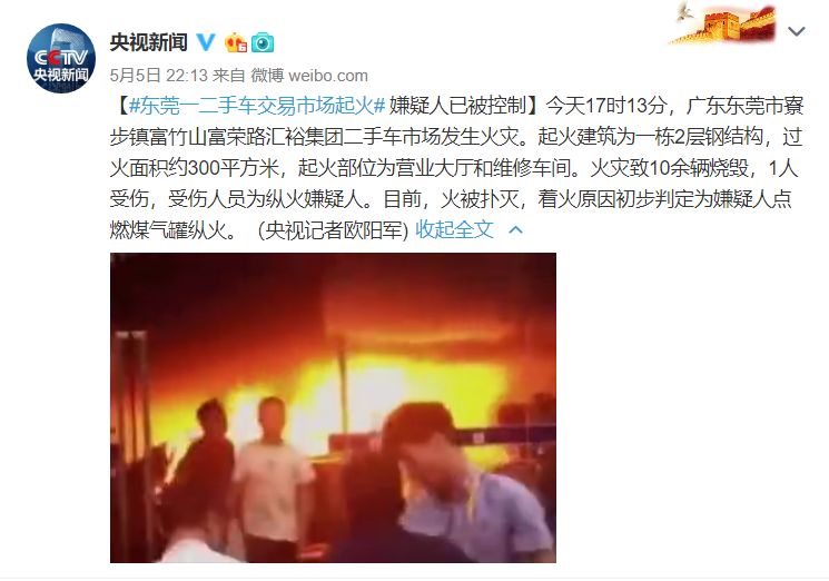 很快,央视新闻及东莞当地媒体都发出事件的最新进展,初步判断原因是人为纵火。